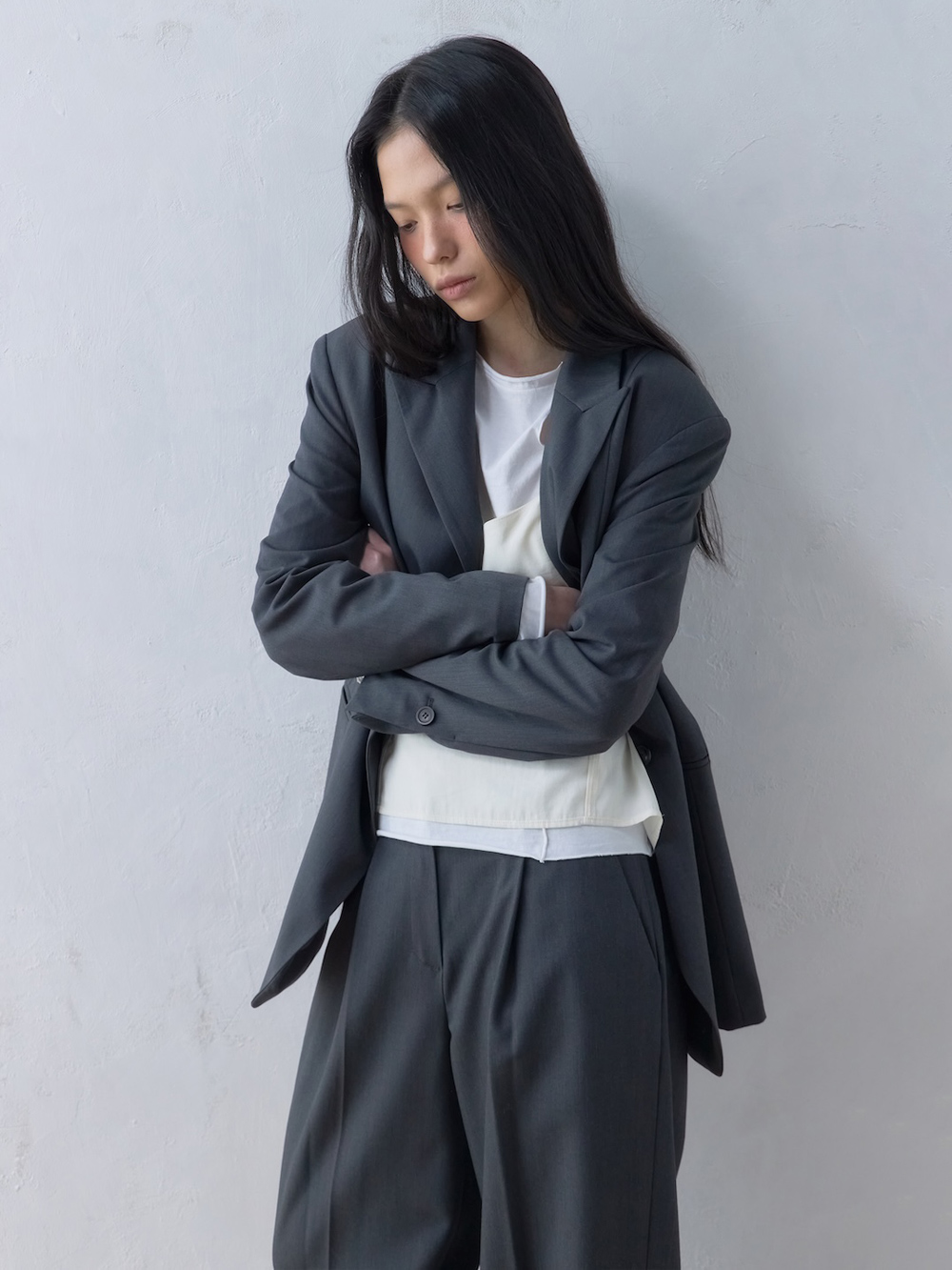 OVERSIZED DIAGONAL BLAZER_CHARCOAL
