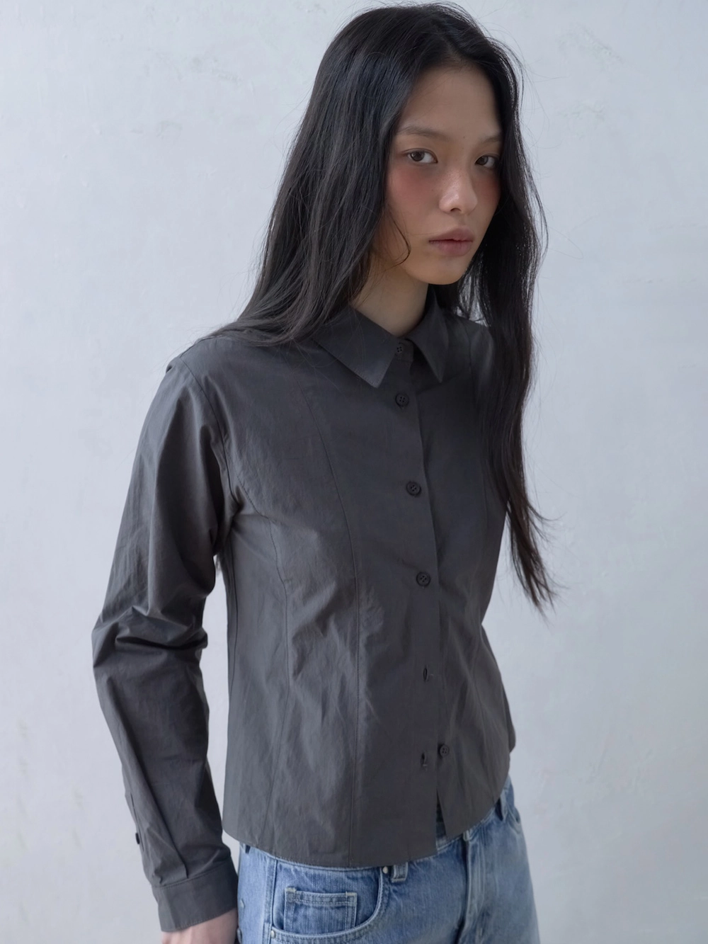 COTTON SLIM FIT SHIRT_CHARCOAL